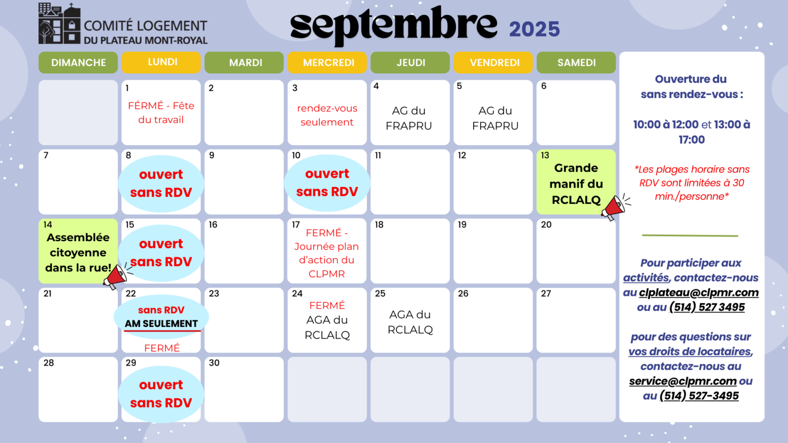 *Contactez-nous si vous souhaitez participer avec le CLPMR*